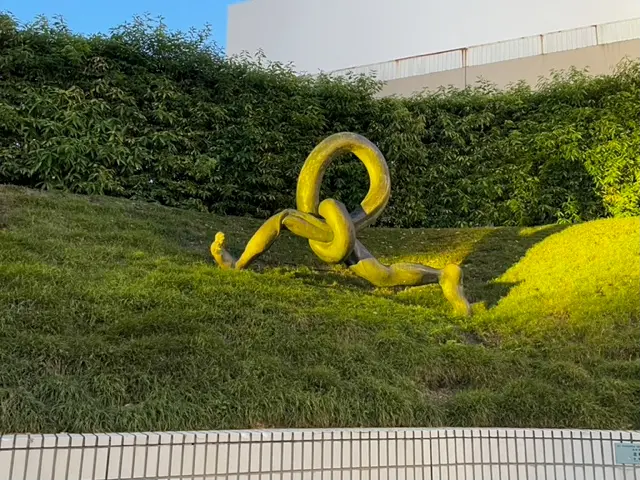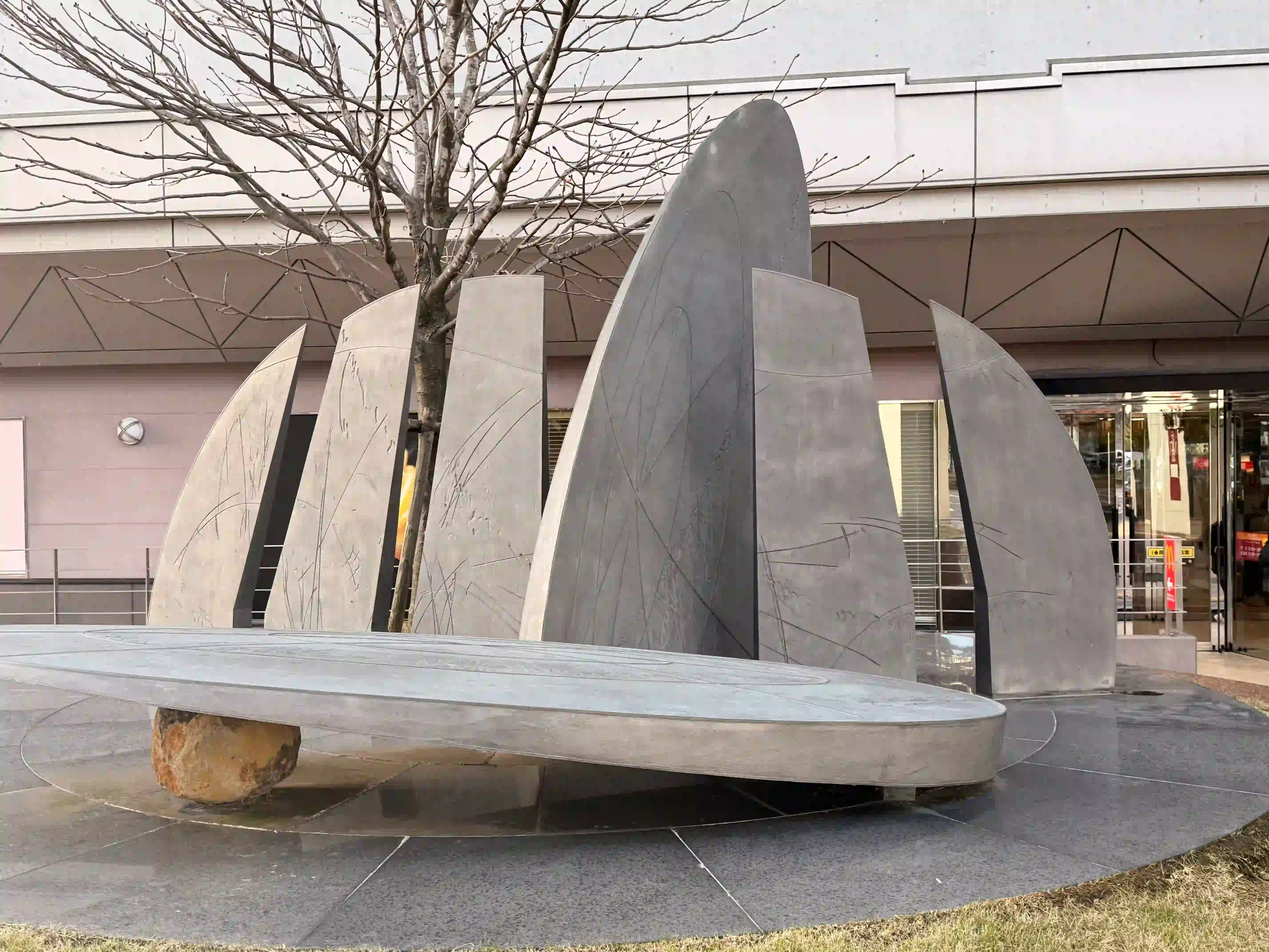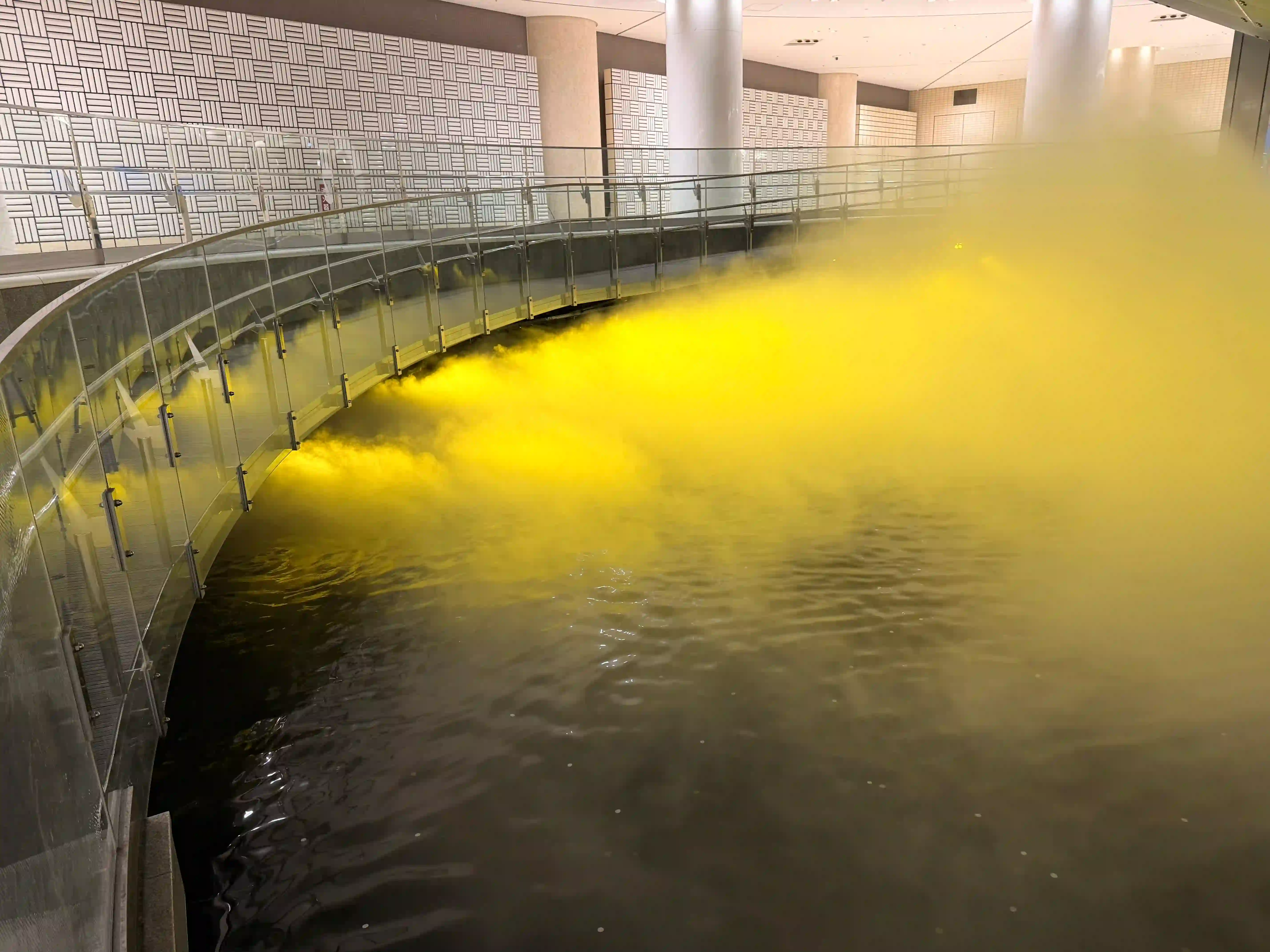 金泽车站雕塑与人工池塘在金色投光灯照耀下熠熠生辉(金泽市政府)